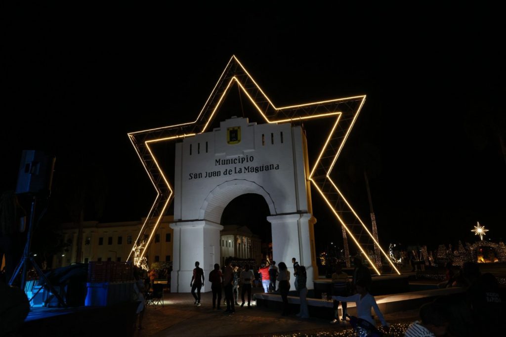 San Juan de la Maguana.- La actividad amenizada por el merenguero Kinito Méndez y su orquesta, reunió a miles de ciudadanos que abarrotaron los alrededores del arco del triunfo, donde el Alcalde Lenin de la Rosa llamó a la población a disfrutar en familia, la época navideña visitando el centro histórico de la ciudad de San Juan de la Maguana.